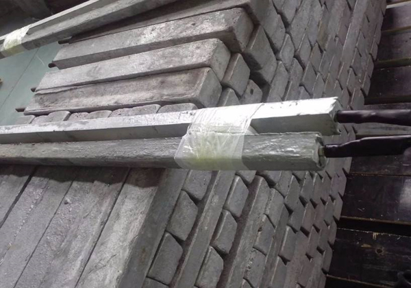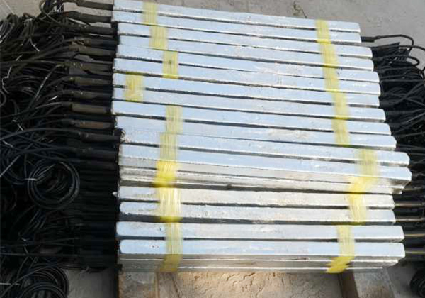 我公司生產(chǎn)的鋅接地電池由平行靠近的一對(duì)或四支鋅合金犧牲陽(yáng)極棒組成,中間用絕緣墊塊隔開,然后一起裝在裝有填包料的棉布袋中,通過引出電纜焊接在絕緣裝置(絕緣接頭或法蘭)的兩側(cè),以防止強(qiáng)電沖擊引起的損壞,同時(shí)日常情況下接地電池也可對(duì)管道起保護(hù)作用。